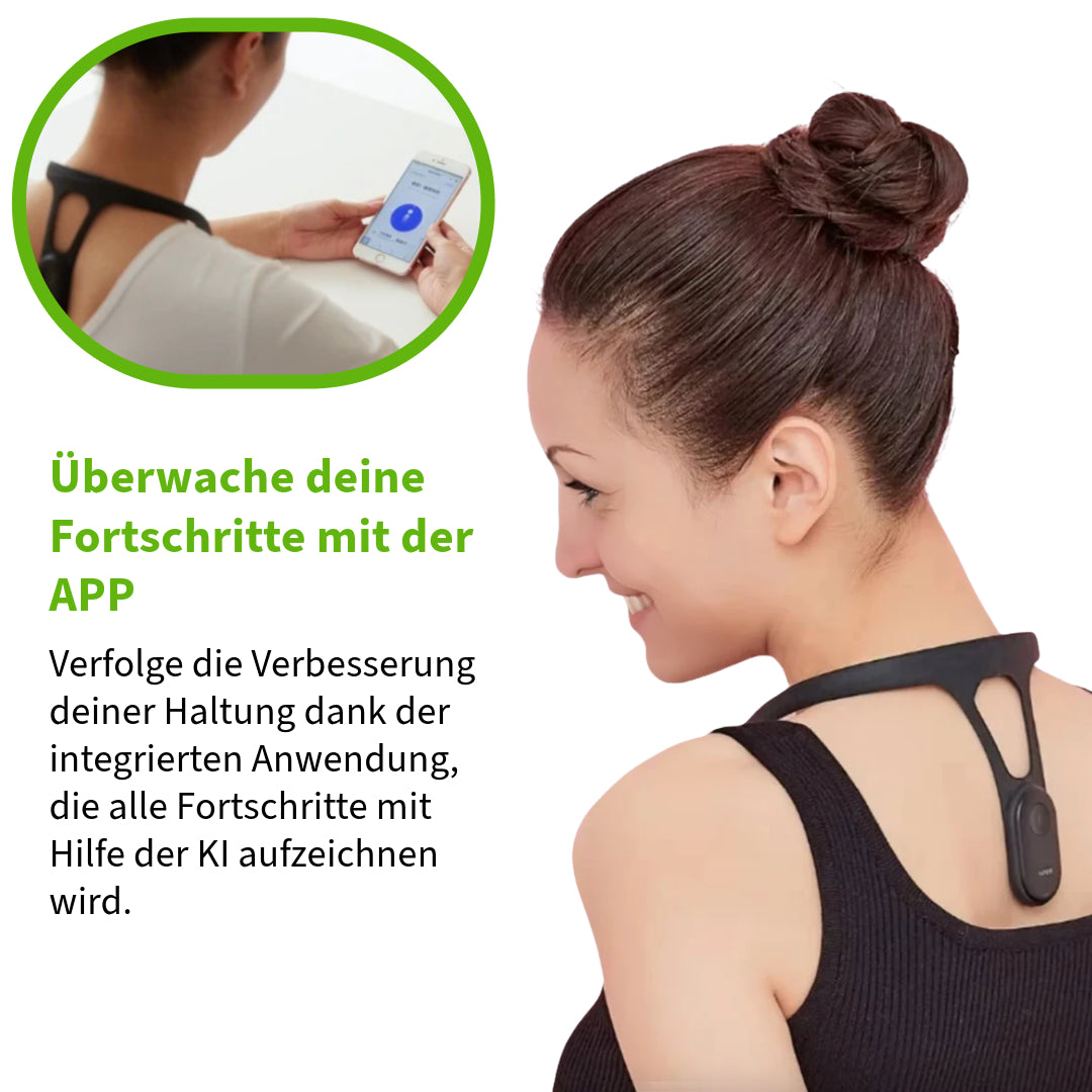 Der KI-Haltungskorrektor erkennt schlechte Haltung und korrigiert sie sofort – sanft, intelligent und unauffällig. Die smarte App speichert Ihre Fortschritte und motiviert Sie täglich.