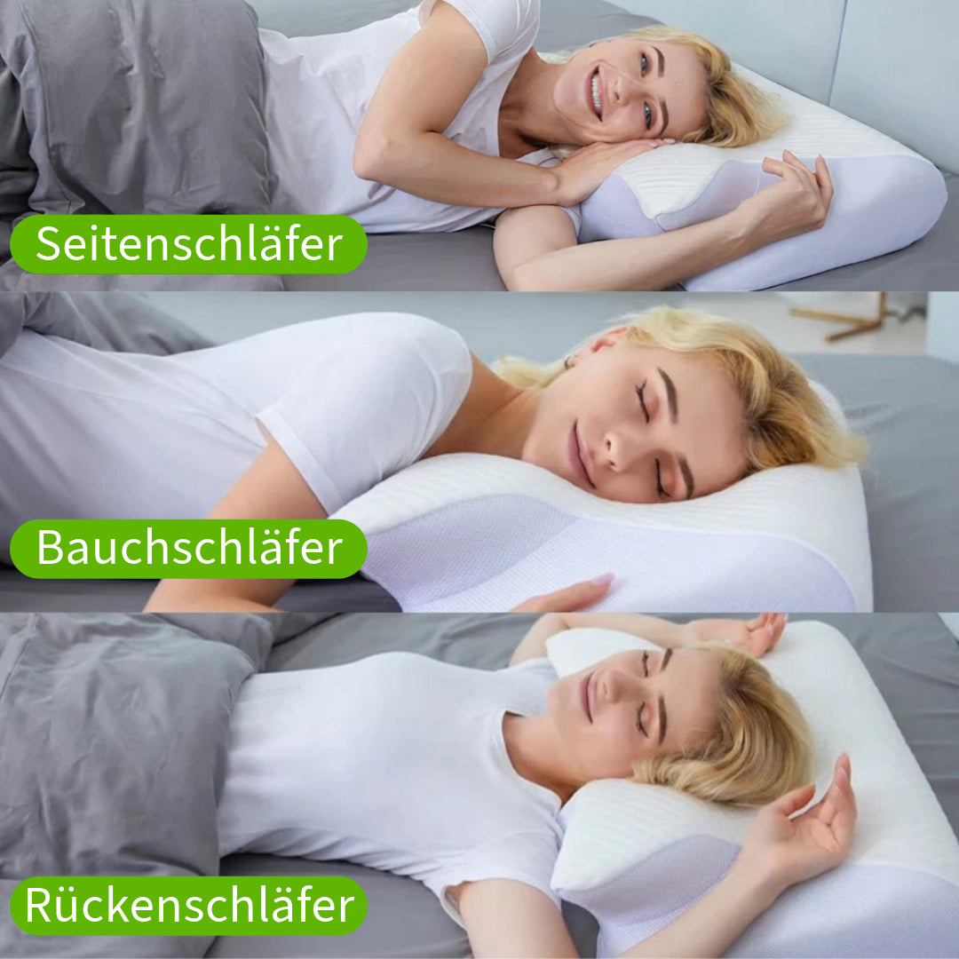 Das YouCure-Kissen bietet optimalen Halt in jeder Schlafposition. Es hält die Wirbelsäule ausgerichtet für Rückenschläfer, entlastet Nacken und Schultern für Seitenschläfer und verhindert Verspannungen für Bauchschläfer dank seines flachen Designs. Es passt sich dir an für einen wirklich erholsamen Schlaf.